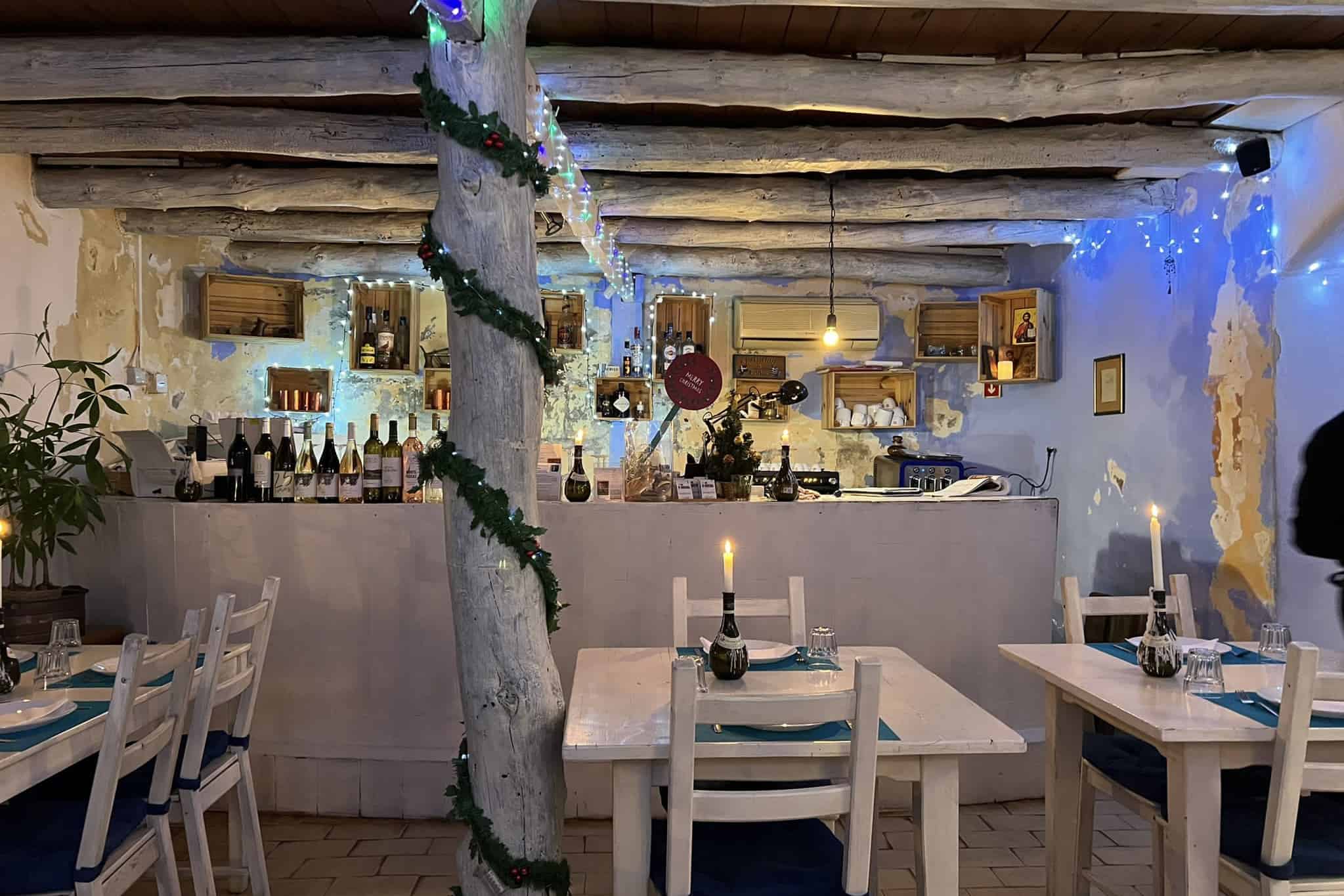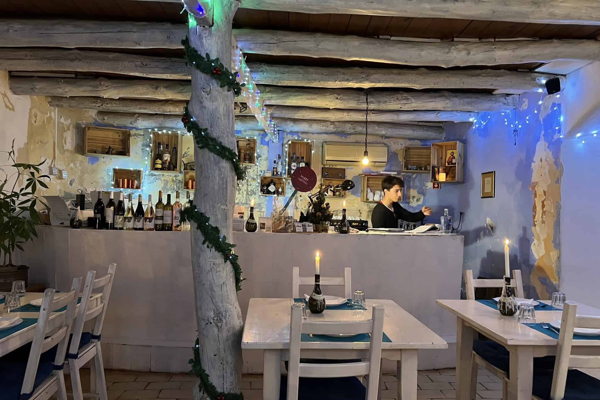 We are kindly received by Philippos Valentinos , the charming owner of the place. The restaurant is small and cozy and is heated by a lovely wood fire. The atmosphere is homely, and you immediately feel at home.