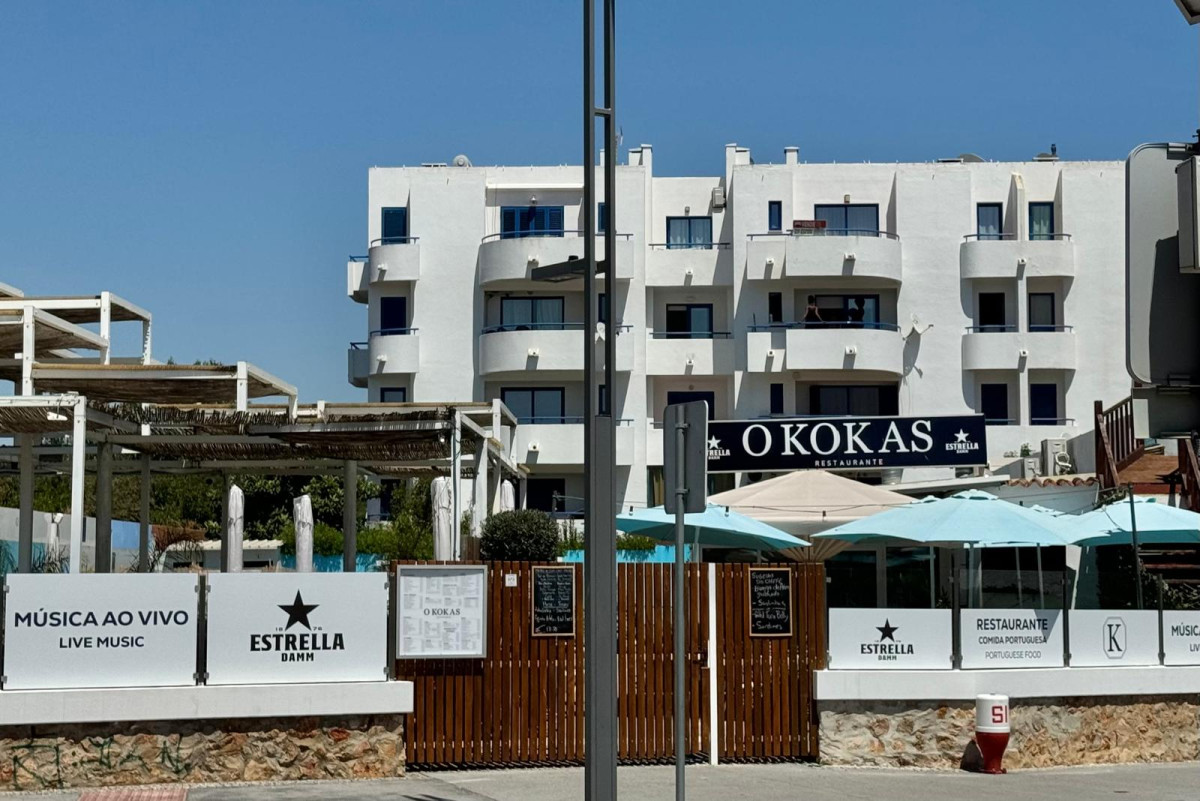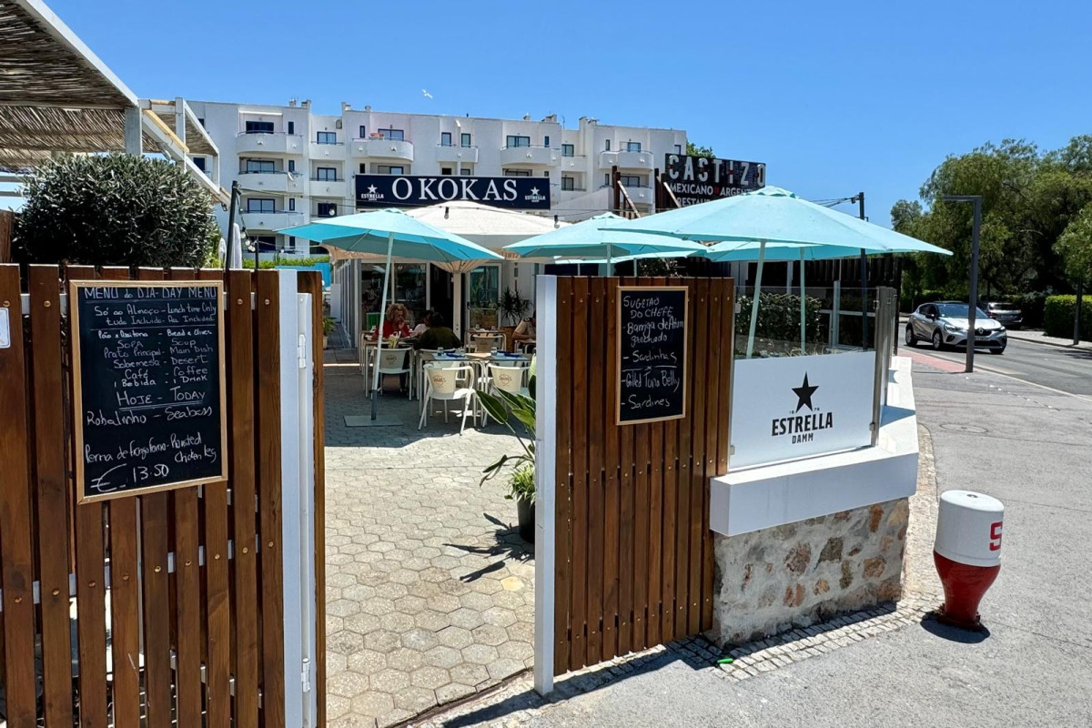 Restaurant O Kokas is located just outside the luxurious marina area, on R. do Sol in Vilamoura - Quarteira. It's on a busy road with lots of traffic, but the terrace is completely fenced off, so you won't be bothered by the noise. However, you might easily walk past the restaurant, as there is only one wooden door leading to the terrace.