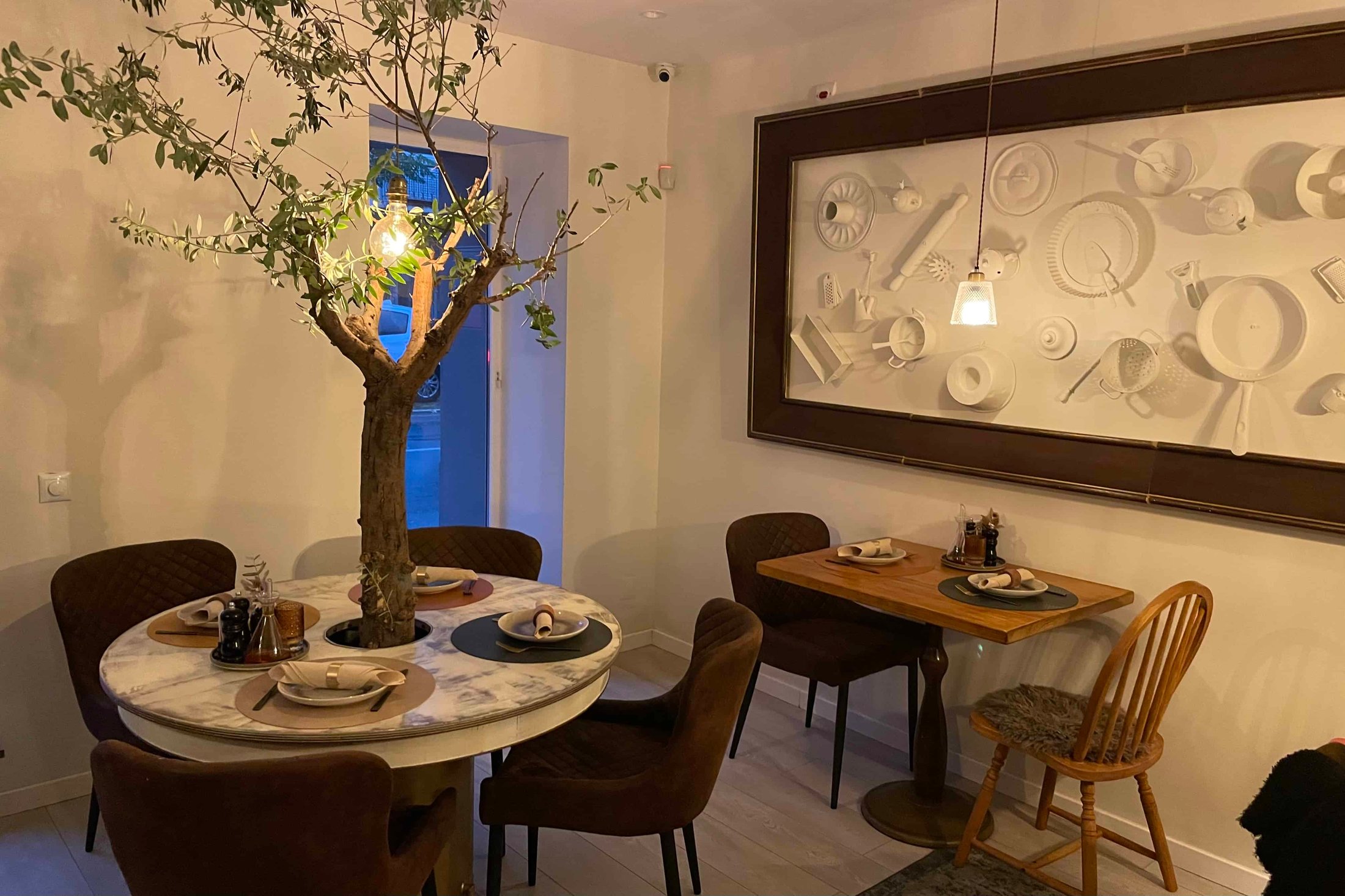 It is housed in a beautifully renovated building. You enter through the cozy bar, from where you can see the semi-open kitchen. As you walk through you come to the small restaurant area that has 5 tables. There is a beautiful roof terrace on the first floor.