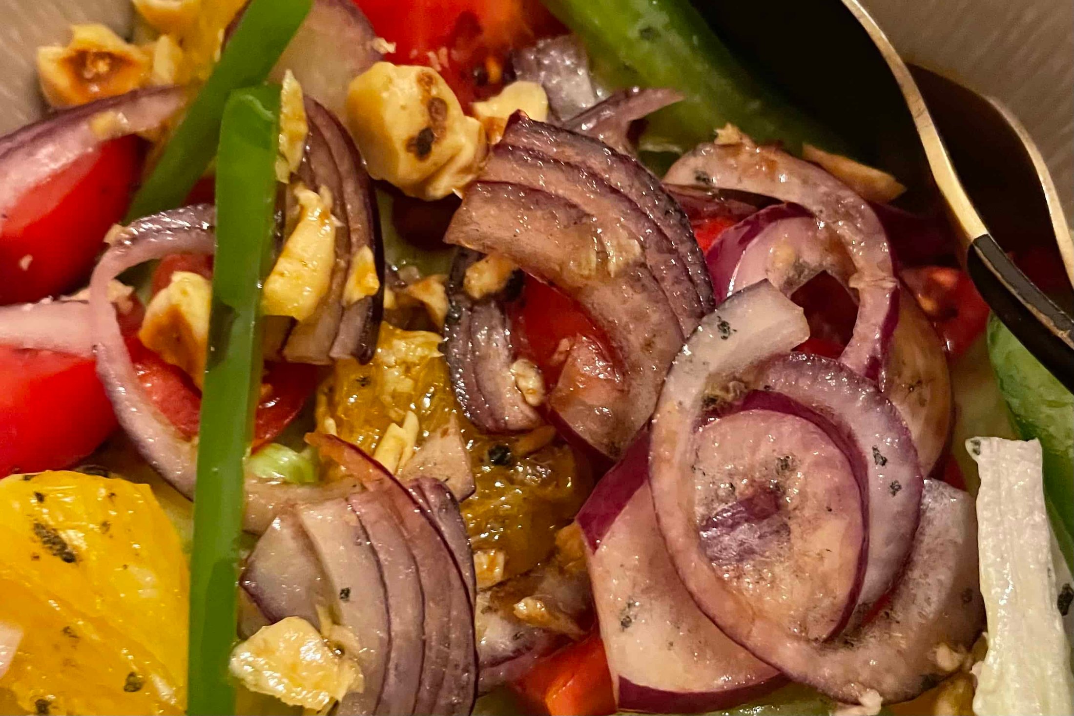 We were received very friendly, and we were the first guests. Later in the evening 2 more guests joined. The beetroot carpaccio looked beautiful and tasted delicious. The tomato soup was also very tasty, you could taste the full flavor of the tomatoes. The mushrooms with green bell pepper from the oven tasted very good!