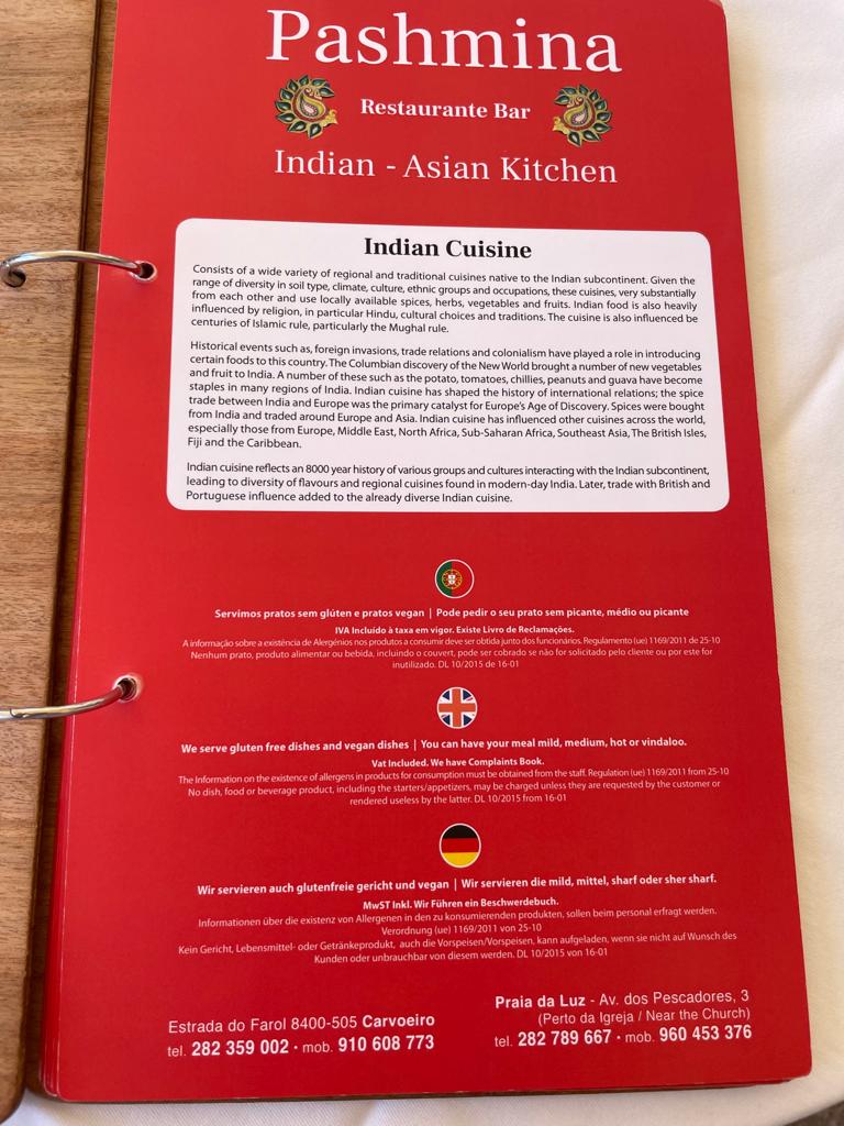 Restaurant Review: Pashmina Asian Restaurant in Carvoeiro