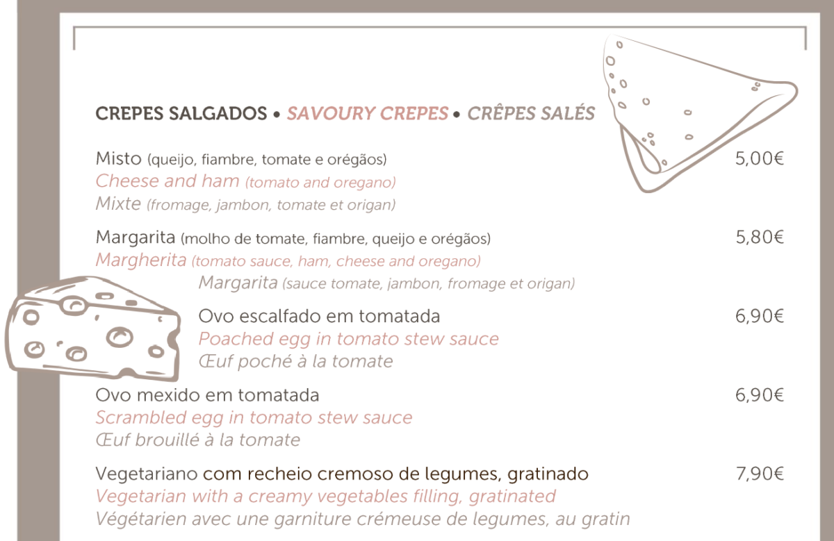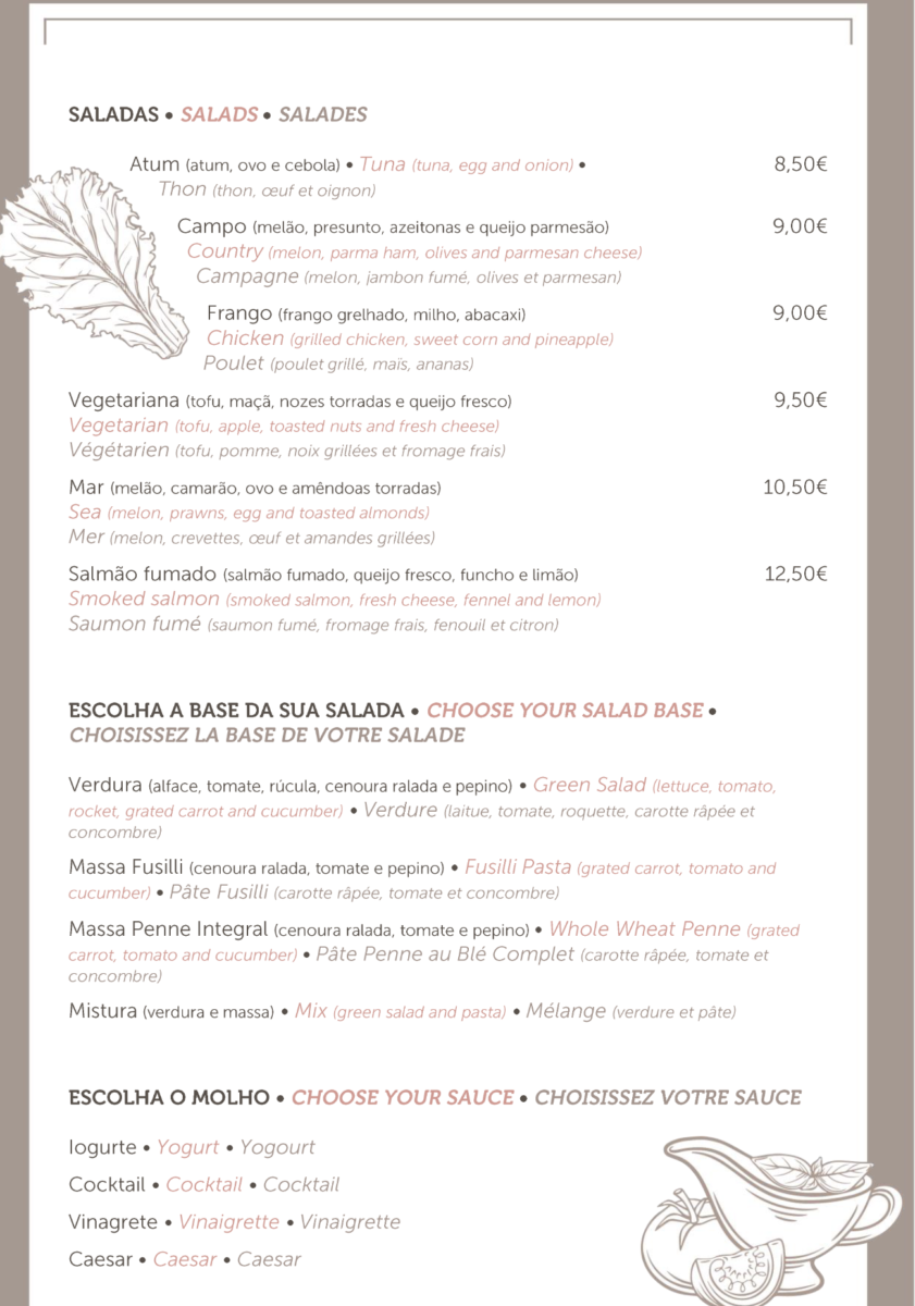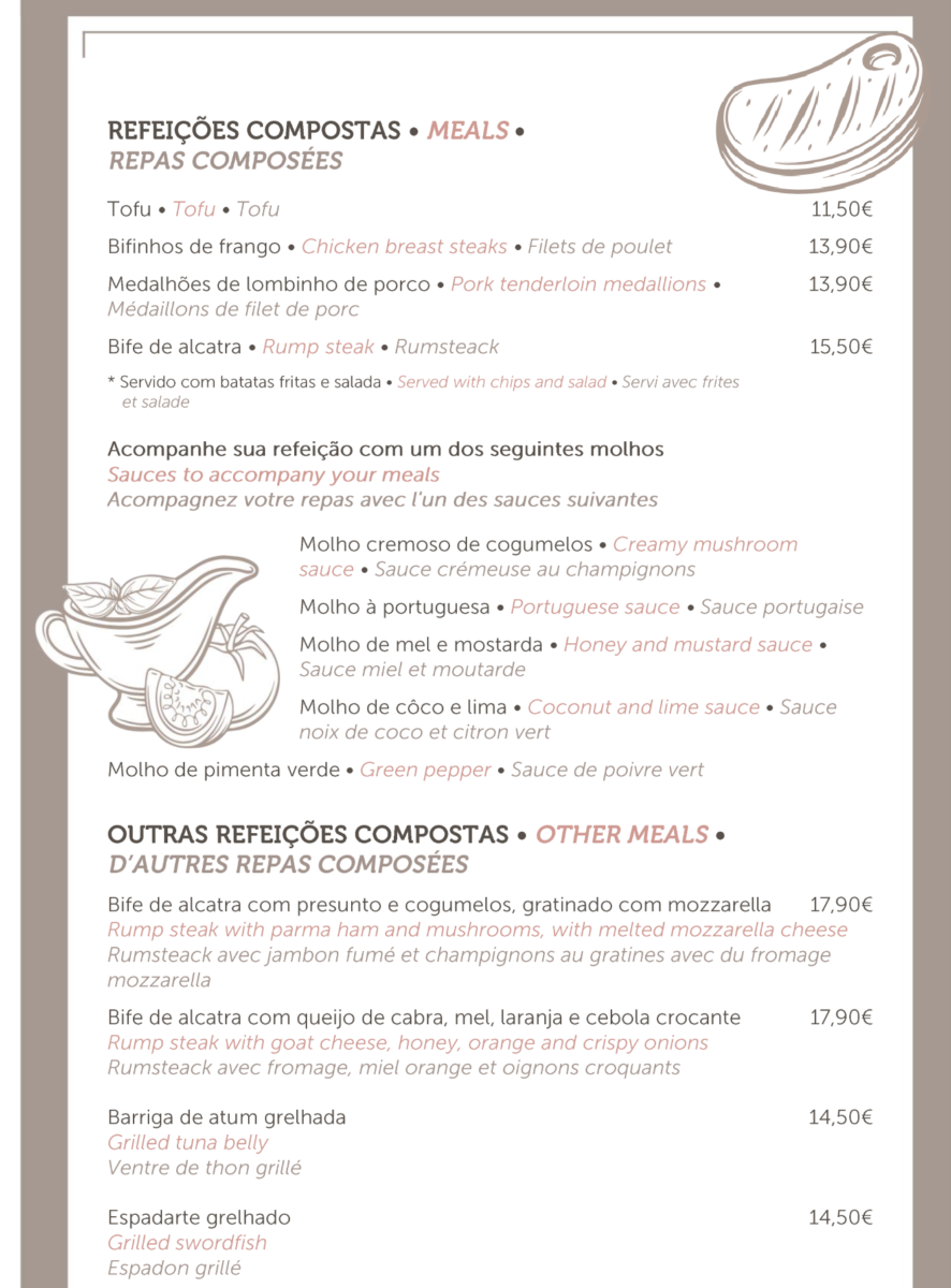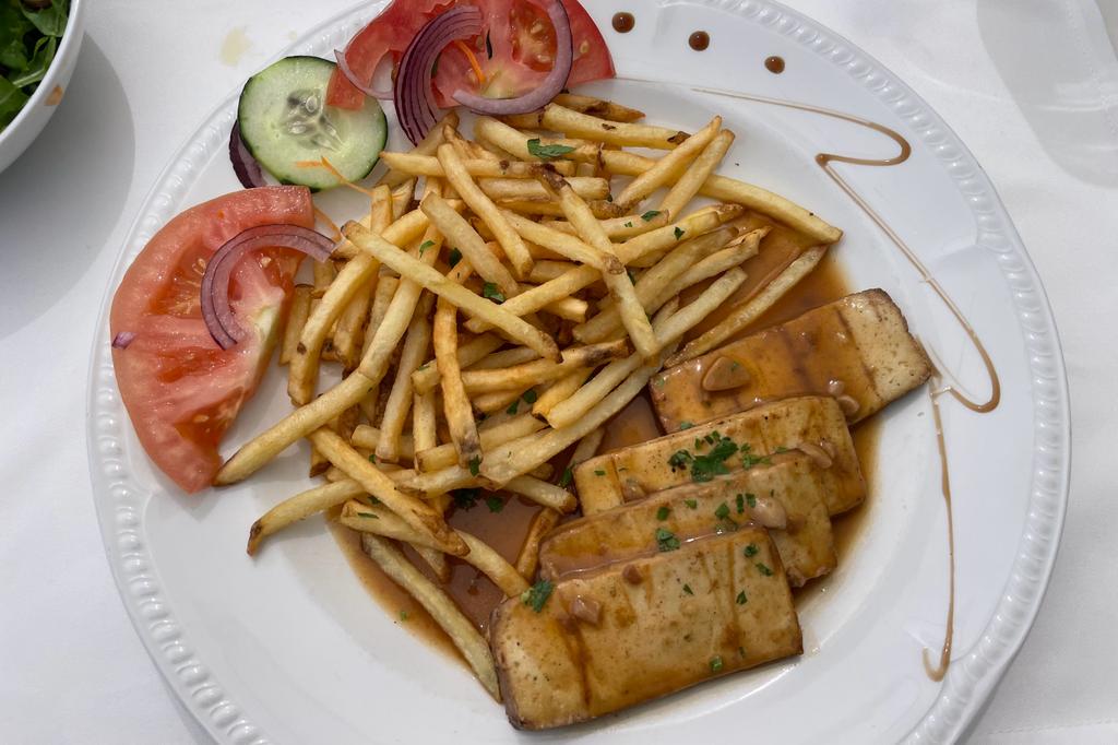 Vegetarians will appreciate the variety, with options like Tofu Breakfast (€6.90), Vegan Salad (€9.50), Vegetarian Lasagna (€9.50), Fried tofu with fries (11.50) and even a Vegetarian Pizza.