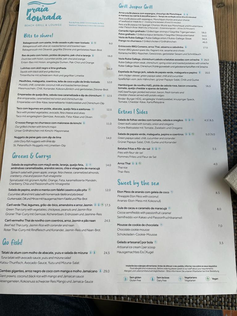Beach pavilion Praia Dourade has a beautiful location on the beach, and an attractive white washed interior, a beautiful atmosphere. It is also nice to get there in winter. And with the semi-open kitchen, it's nice to see the chefs at work.