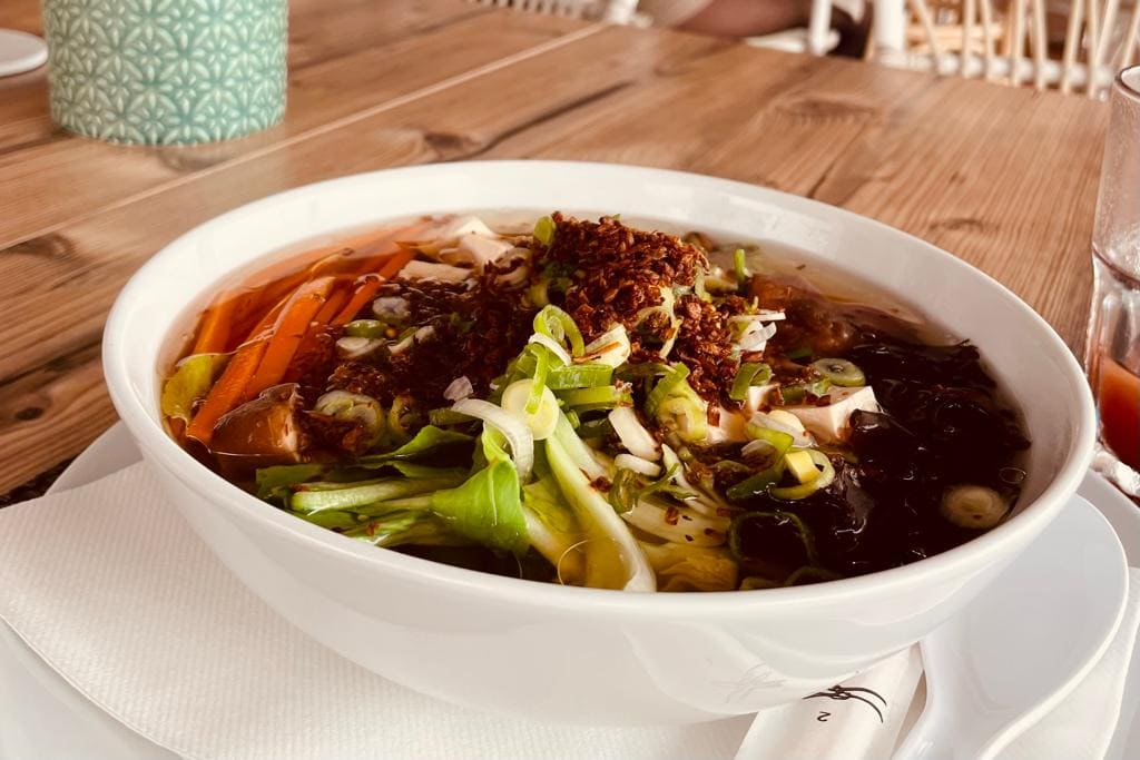 The modern menu is extensive and balanced, very well done. In addition to the 6 fish dishes and 6 meat dishes, you can also choose from 6 vegetarian dishes, such as the green curry, Taco with avocado, empanada with brie, ramen with tofu and Falafel with pita bread . The prices of the vegetarian dishes vary from 12.50 to 17.50. The fish dishes cost between 24.50 and 58 euros. The ordered ( vegan ) ramen with tofu is generously filled and tastes delicious!
