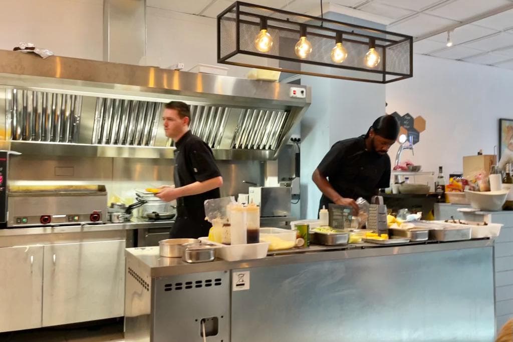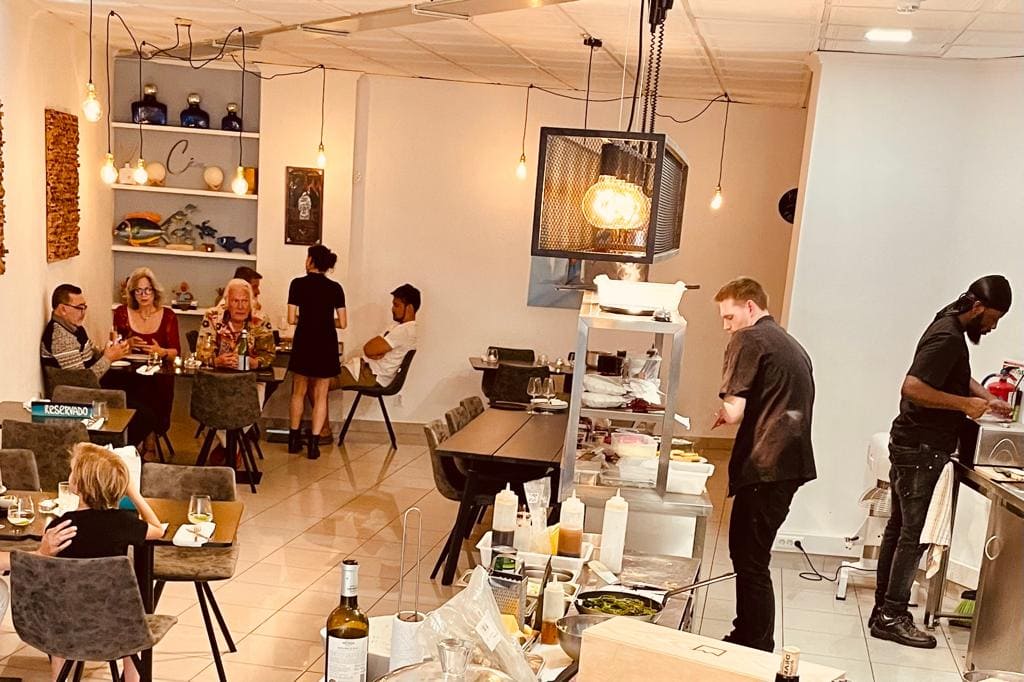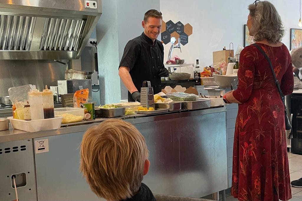 Because of the open kitchen, you have good contact with the 2 chefs.