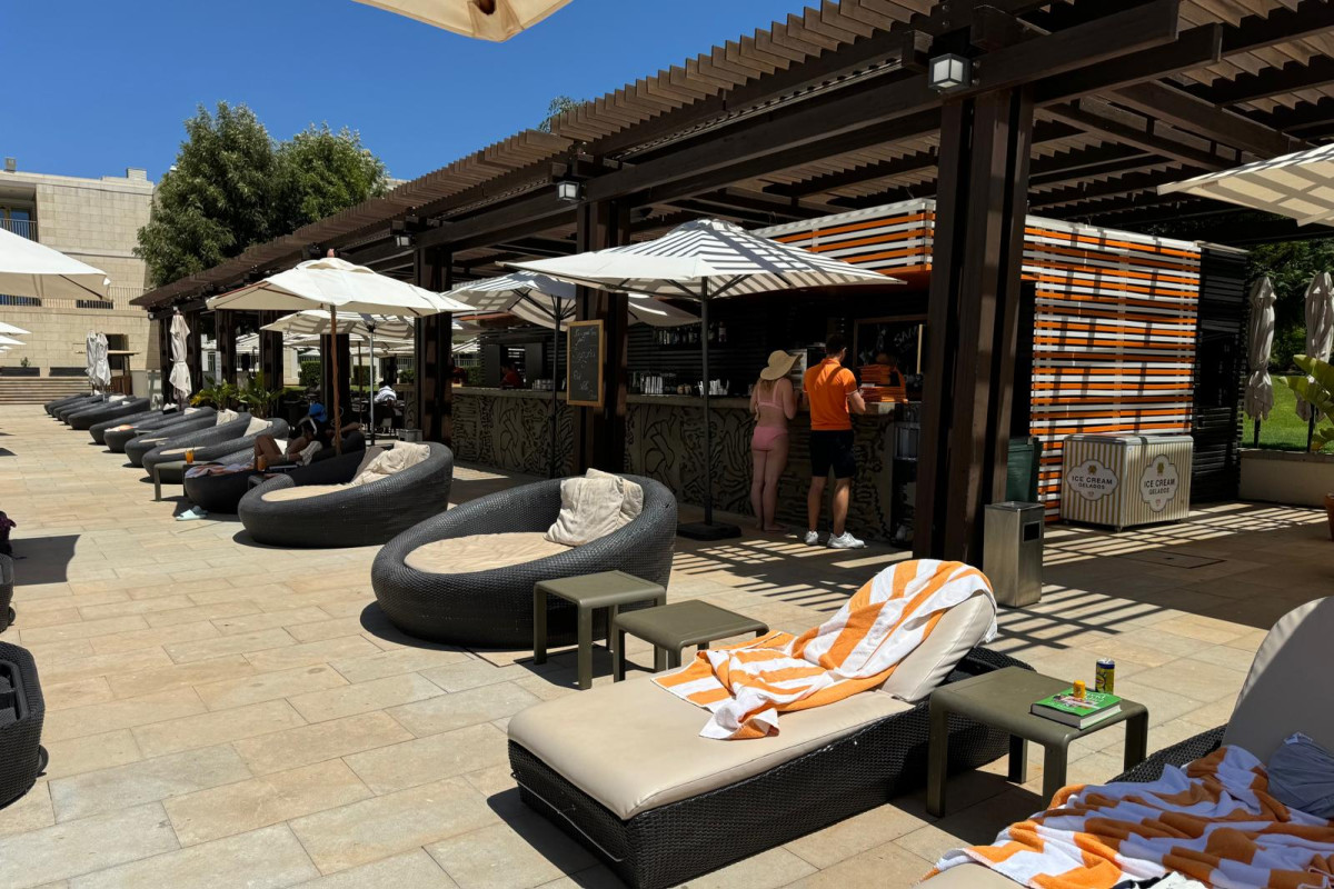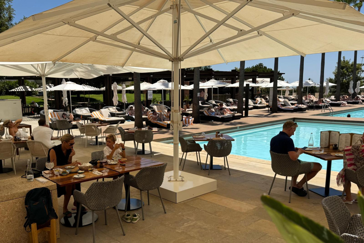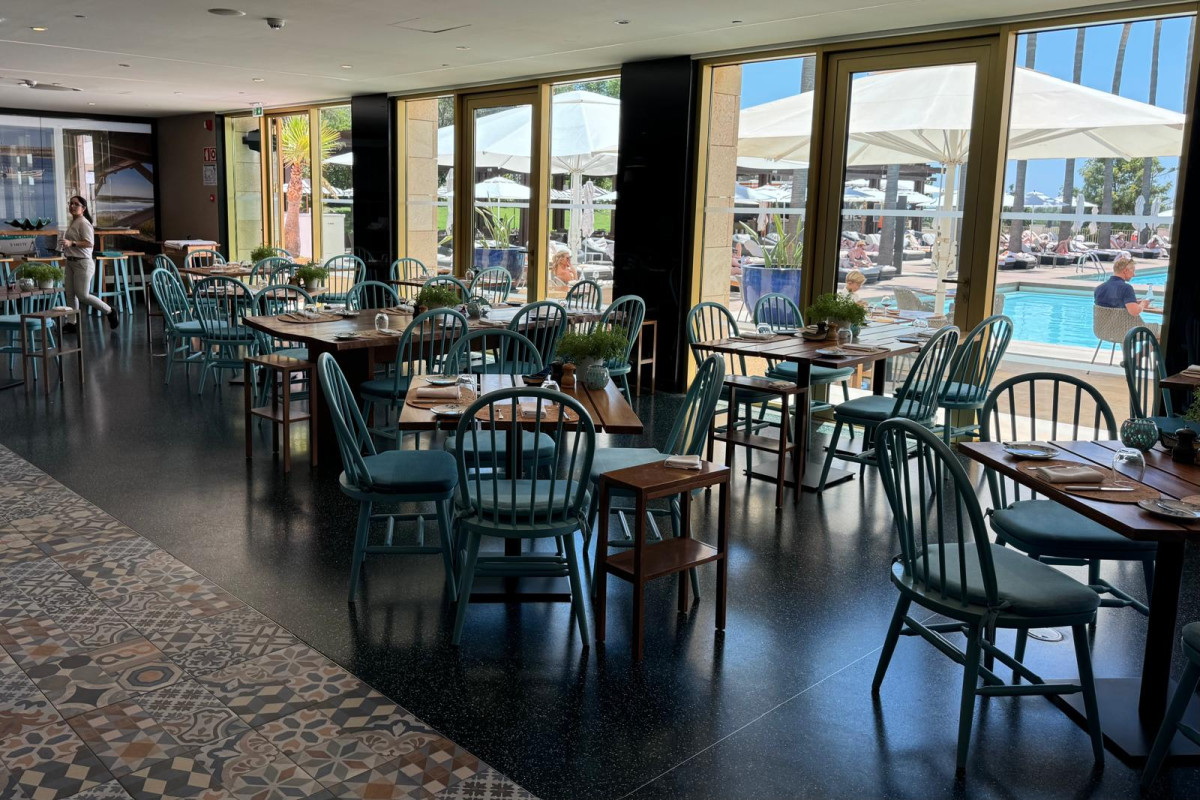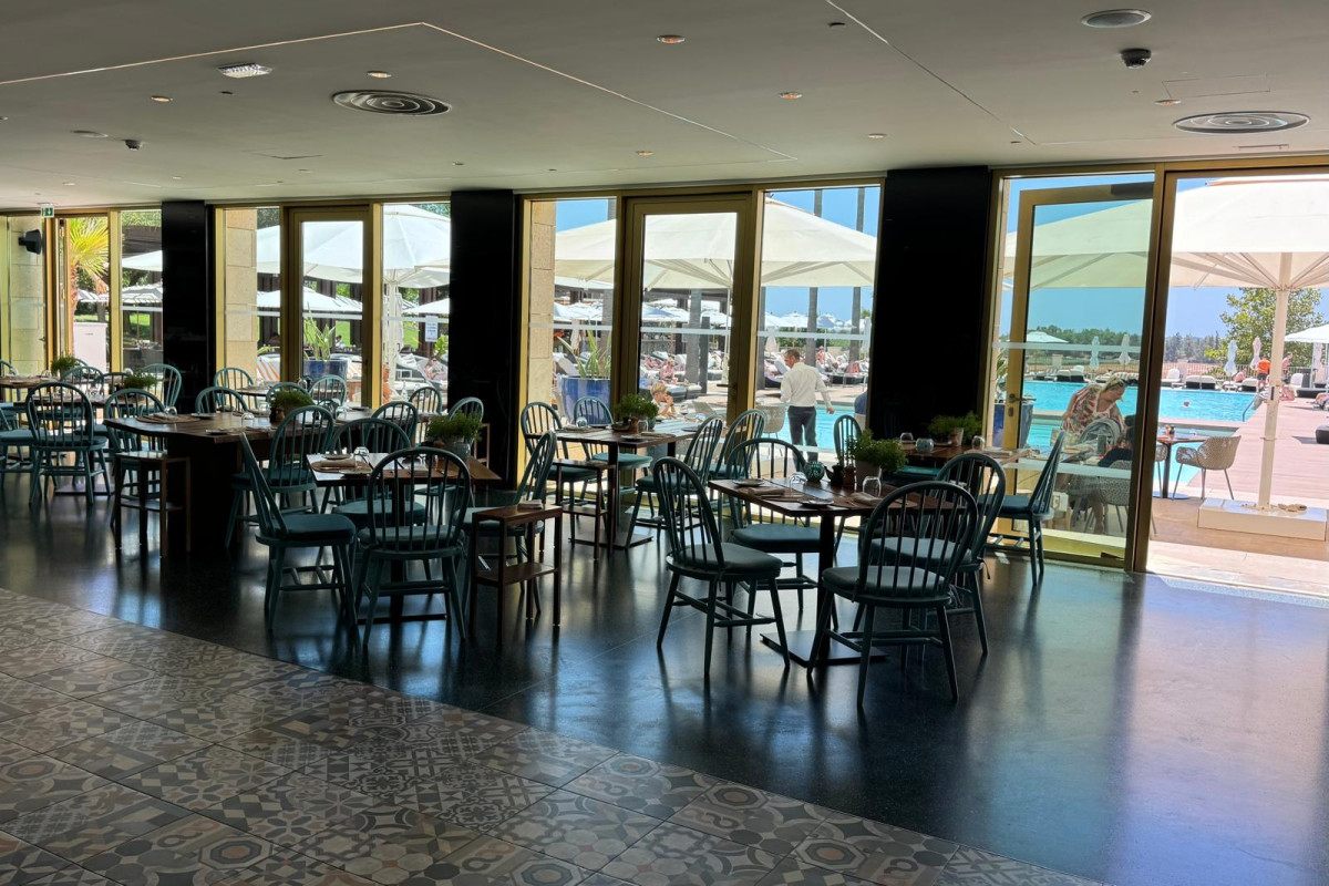 Located in the prestigious 5-star Anantara Golf Hotel, Restaurant Ria Vilamoura is a must-visit. From the reception of the Anantara Hotel, take the elevator to -1 to reach the breathtaking pool area. Here, you are welcomed by palm trees and luxurious sunbeds, giving you an immediate sense of a luxury vacation. This pool area restaurant offers both indoor and outdoor dining options, where you can enjoy views of the open kitchen and the stunning pool.