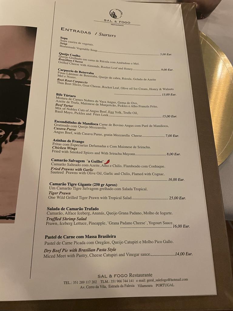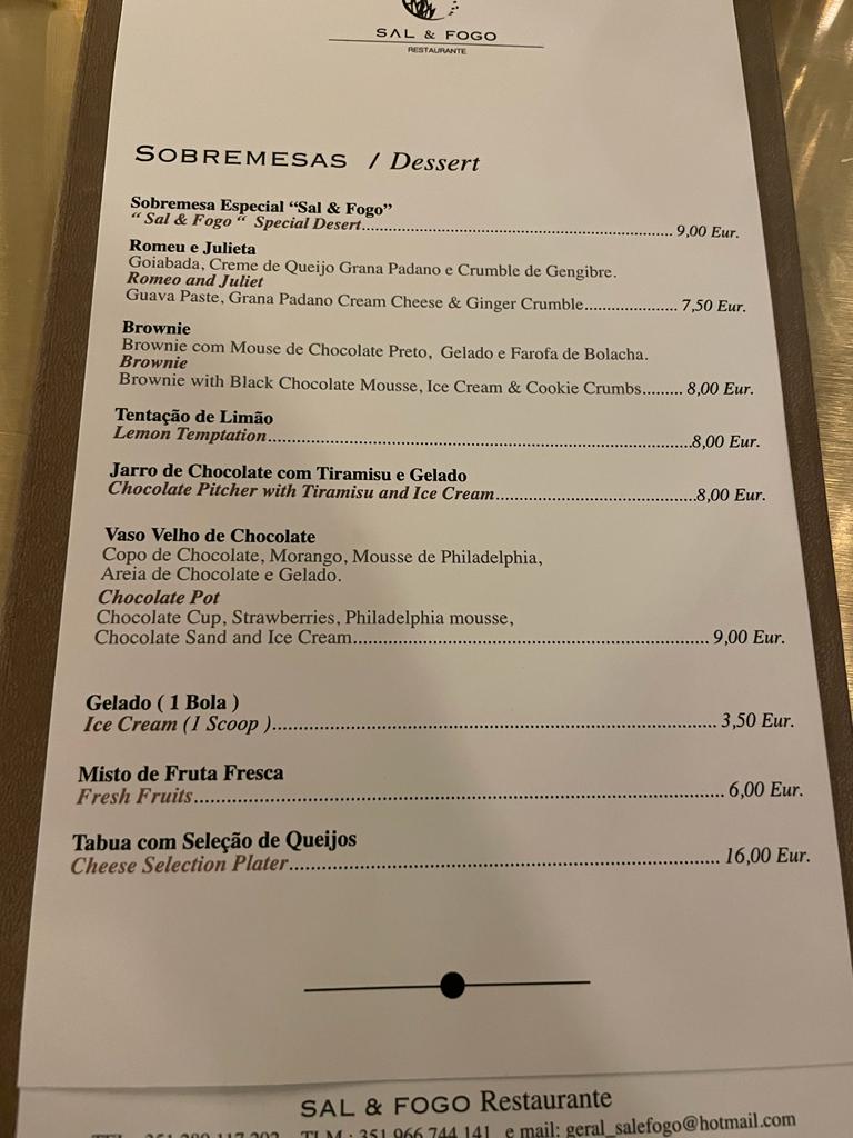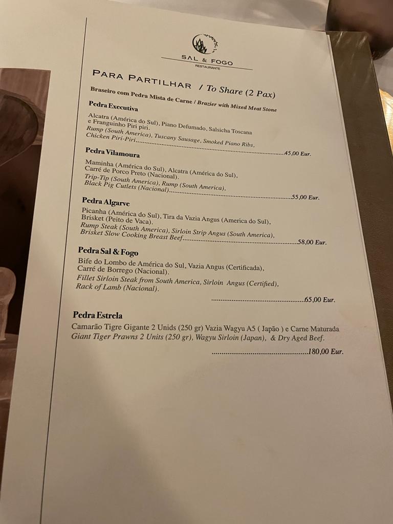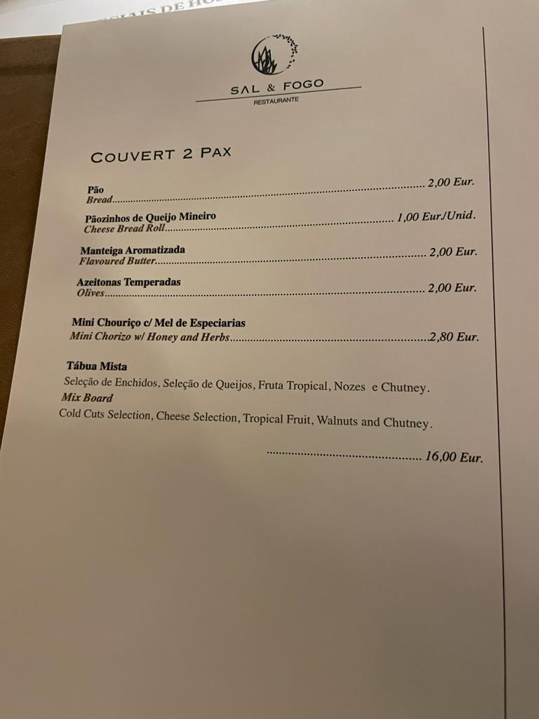 Where we found a slight drawback was in Sal & Fogo's menu. While the dishes are of high quality, the menu consists mainly of meat dishes, with only a few fish and vegan options. This might disappoint those who prefer fish or follow a vegan diet. The name "Salt & Fire" refers to their frequent use of grilling techniques.