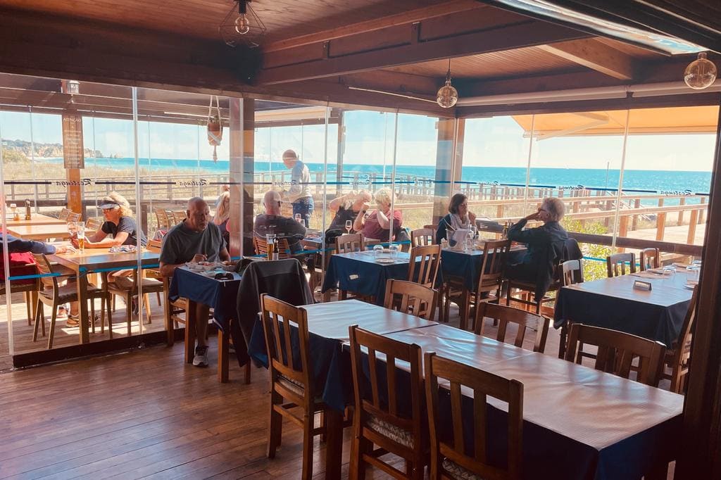 The restaurant's unique pavilion setting provides an enchanting view of the ocean, dunes, sandy beaches, Lagos, and Alvor's harbor bay – an experience like no other.
