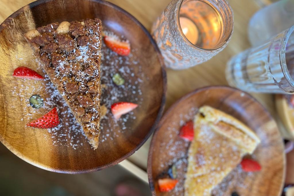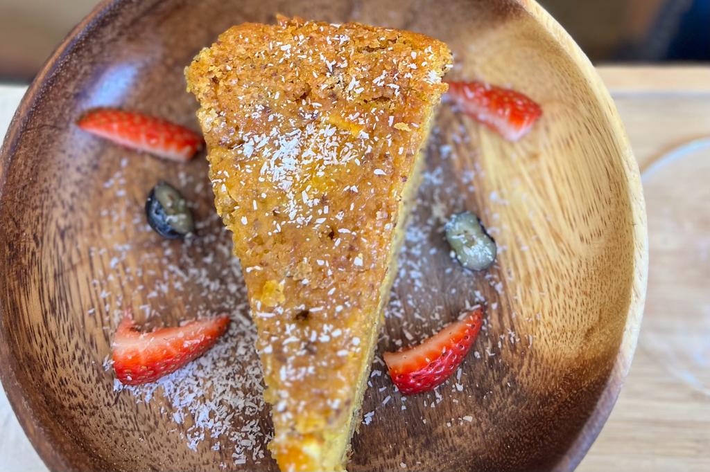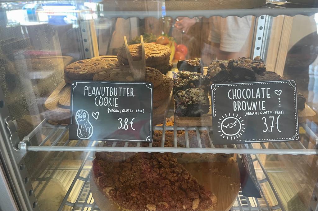 The menu includes 6 types of cake (3.90), quiche (6.50) acai bowls ((7.50), Soup (4.20), Salads( 13.50), etc.
