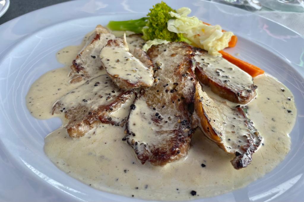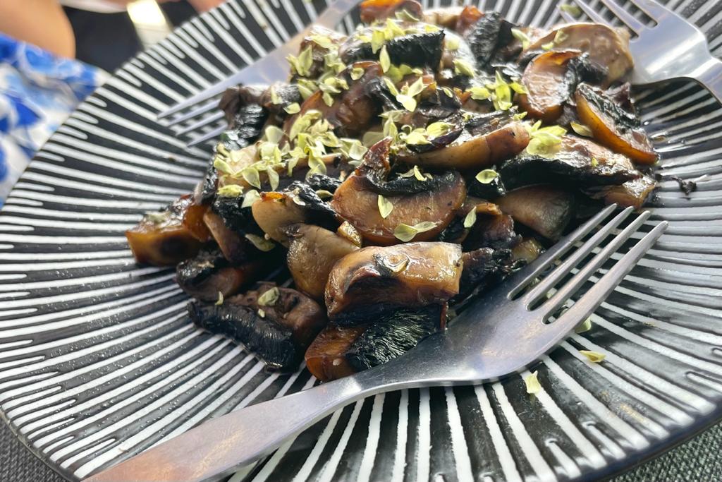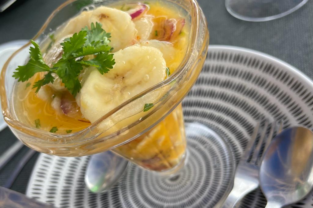 Our culinary journey began with delightful starters: vegetable soup (€4), South American-style ceviche (€7.50), and garlic-infused mushrooms (€6.50).
