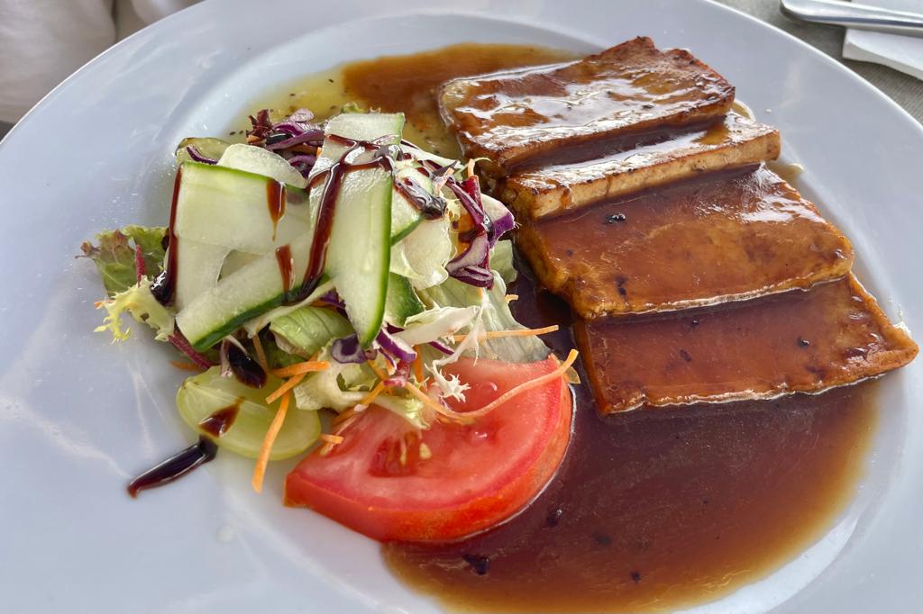 Their menu is an impressive mix of options, well-balanced with starters, salads, 6 fish dishes, 6 meat dishes, and an impressive selection of 6 vegan dishes.