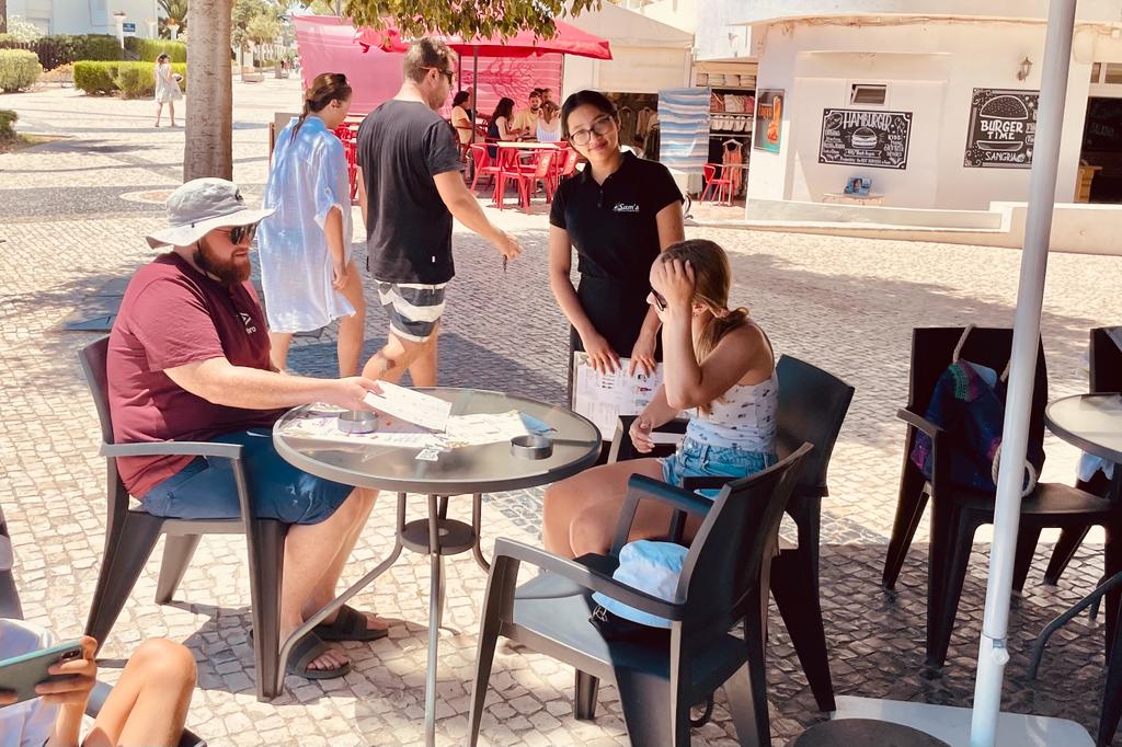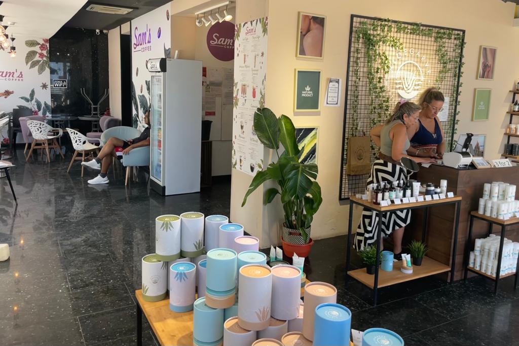 The café's prime location offers a splendid view of the ocean and allows patrons to enjoy the bustling atmosphere of people strolling by. It is evident that Sam's Coffee and Bistro is part of a larger concept, with the owner already operating ten Aloegarve shops in various seaside resorts across the Algarve. In Armação de Pêra, this café is conveniently linked to a shop, creating a seamless connection between dining and shopping experiences. If the concept proves successful, we can anticipate the opening of more Sam's coffee and bistro locations in the future.