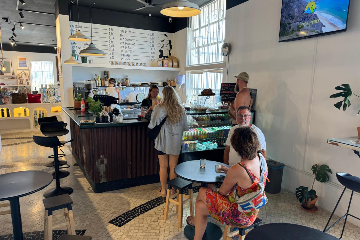 The café is seamlessly integrated into the store, allowing you to enjoy a great coffee or snack while browsing the latest gear. It's clear that SantoLoco in Sagres, along with its stores in Munich and Lisbon, fully lives up to its reputation as the best surf shop in Portugal.