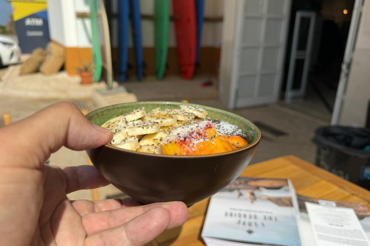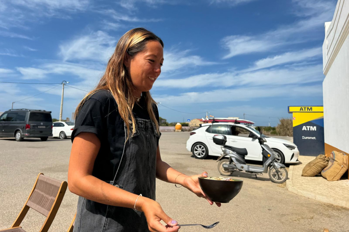 The service is friendly and relaxed, with no annoying buzzers. You can enjoy your meal inside the café or outside on the spacious terrace with a view of the parking area. It's the ideal spot to recharge after a day of surfing or shopping.