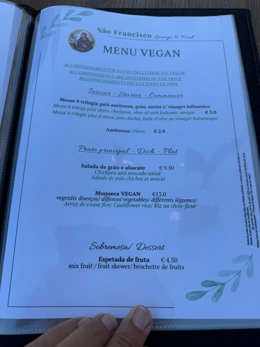 Just 50 meters from the terrace, at R. de São Francisco 30, you’ll find the charming São Francisco restaurant. Inside, you'll find a beautifully decorated interior where you can enjoy both fish and meat dishes, as well as delicious vegan options.
