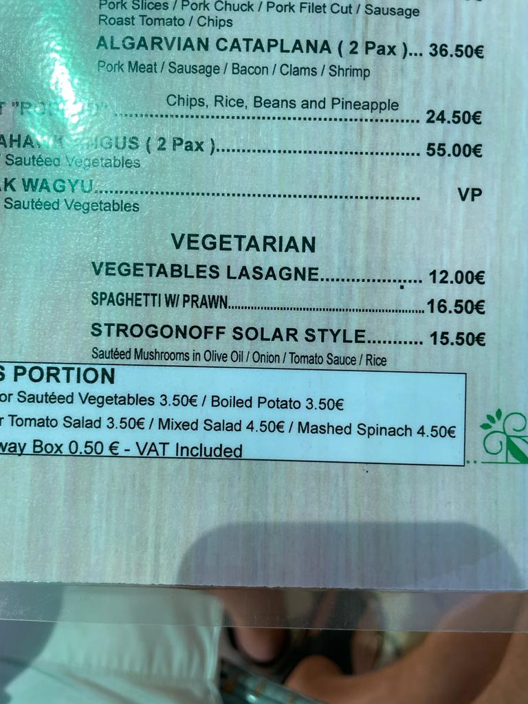 Portion sizes at Solar das Oliveiras are notably generous, offering excellent value for your money. An additional touch of thoughtfulness is seen in their readiness to accommodate leftovers. When we couldn't finish the dish, the staff happily packaged it for me to enjoy later, promptly returning it in a convenient container.