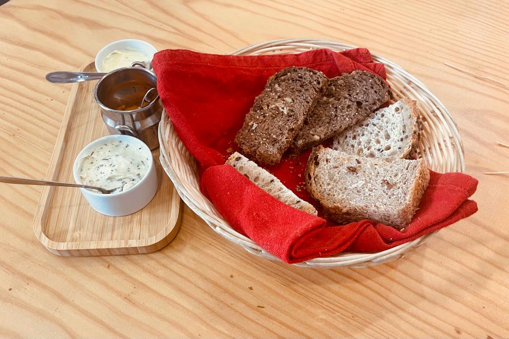 Then we get a nice bread basket (can also be gluten-free) with olives and Portuguese carrots .