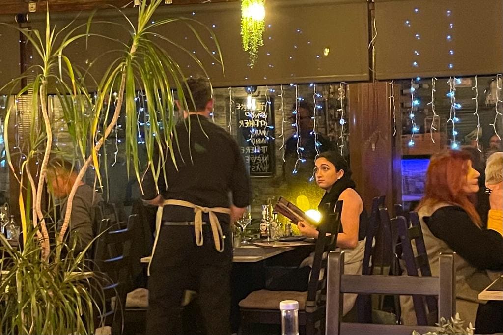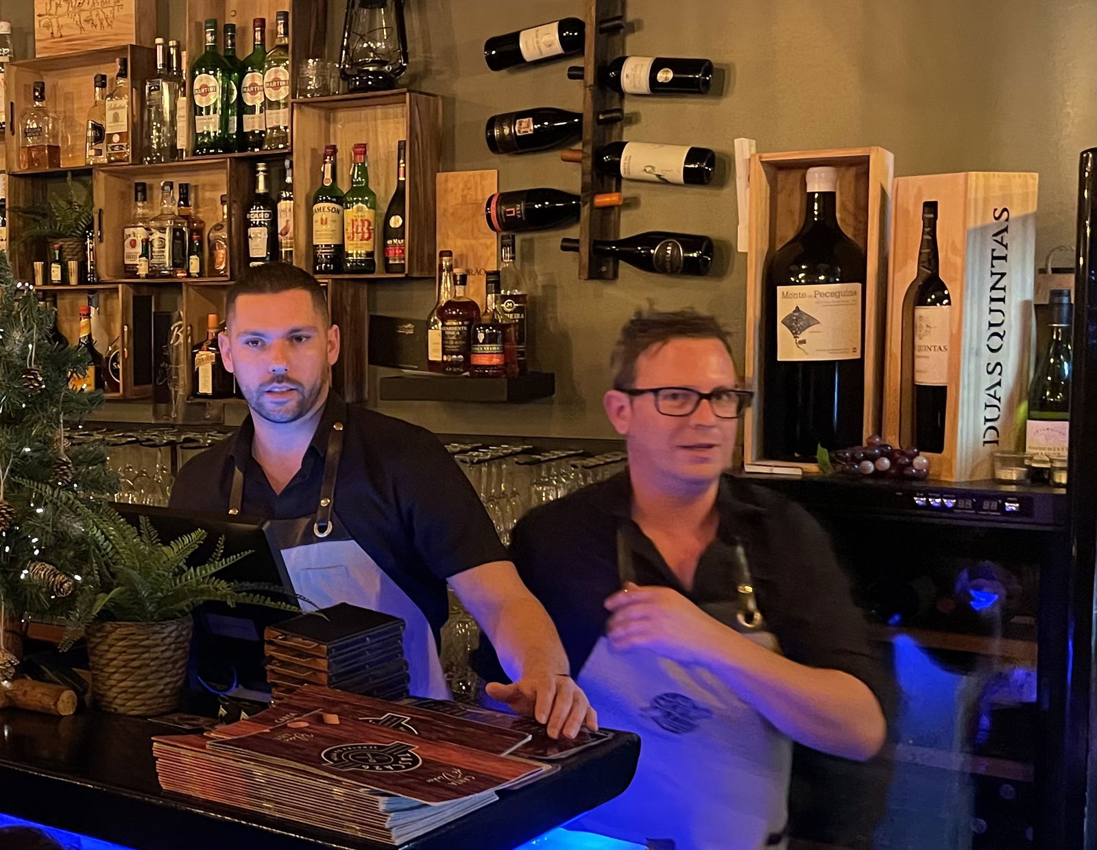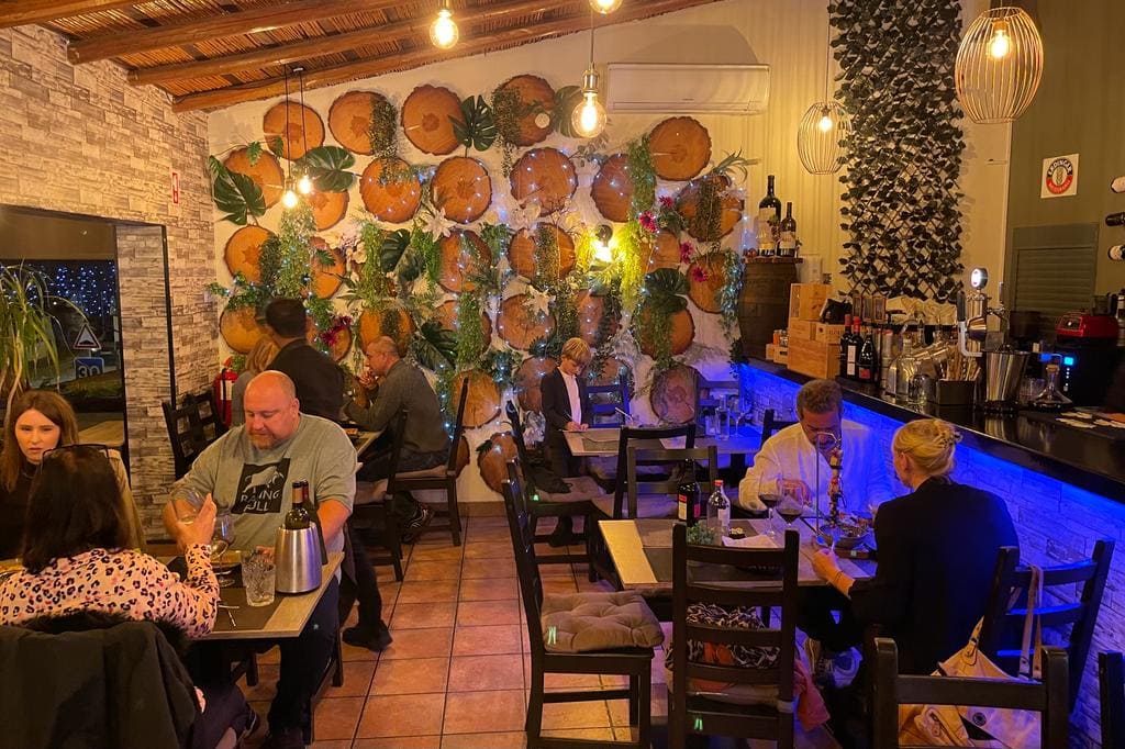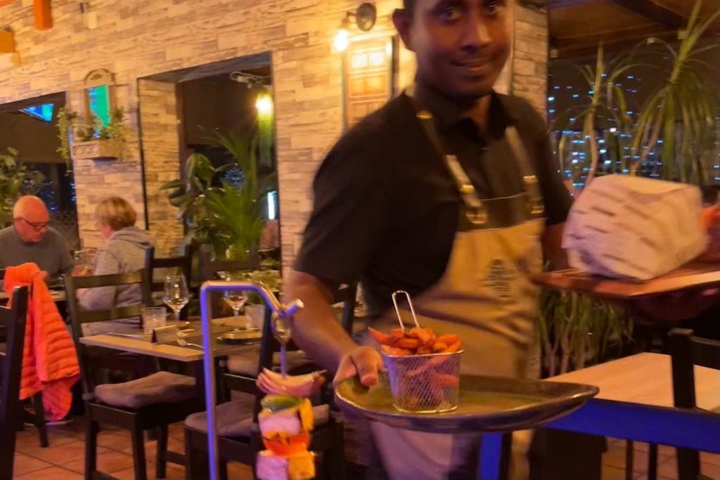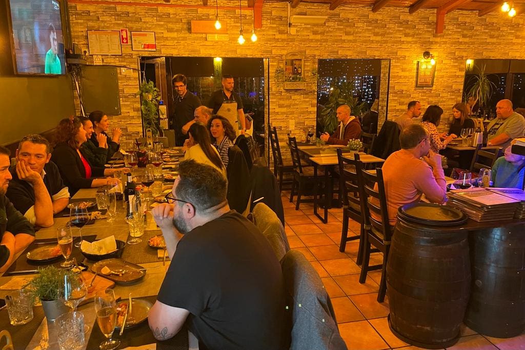 The restaurant is on the 1st floor, which you access via an outside staircase. You will be welcomed enthusiastically by the 4 hosts. You immediately feel at home, and I understand that for many people this is the favorite restaurant in Porches . The restaurant looks cozy and neat. There is 1 TV screen , and for me that is one too many. Nevertheless.