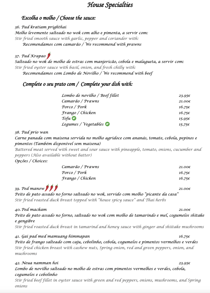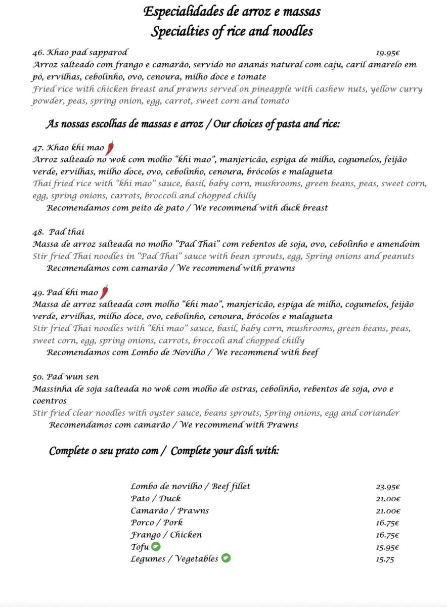 The menu is very extensive, and with almost all dishes you can choose whether you want it with tofo, shrimp or beef. There are many vegetarian and vegan options.