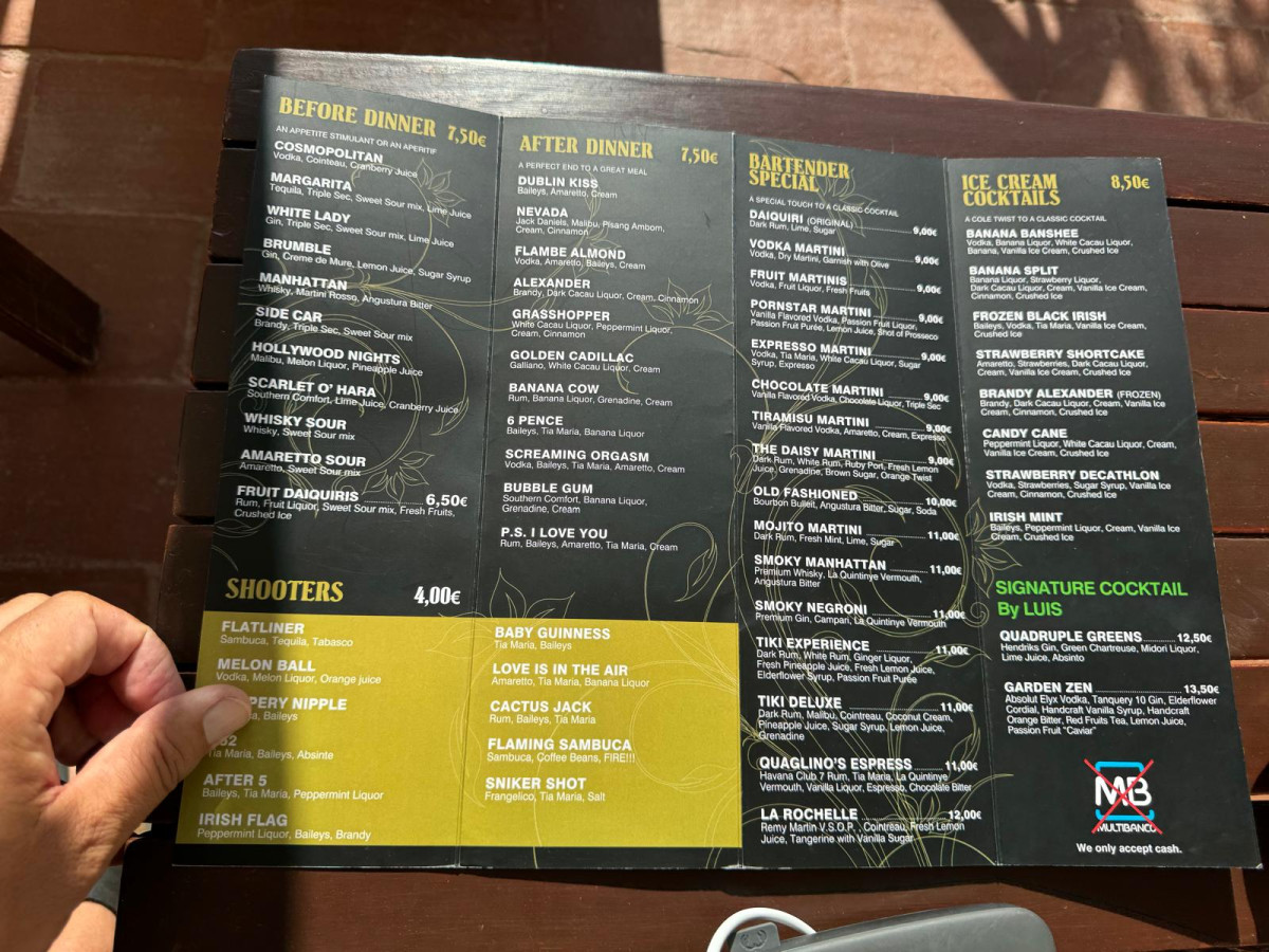 The friendly staff is always ready to welcome guests and ensure they have an unforgettable experience. The extensive cocktail menu features delicious drinks such as the Esma (€9), the Screaming Orgasm (€7.50), Sex on the Beach (€8), and the Mojito Martini (€11).