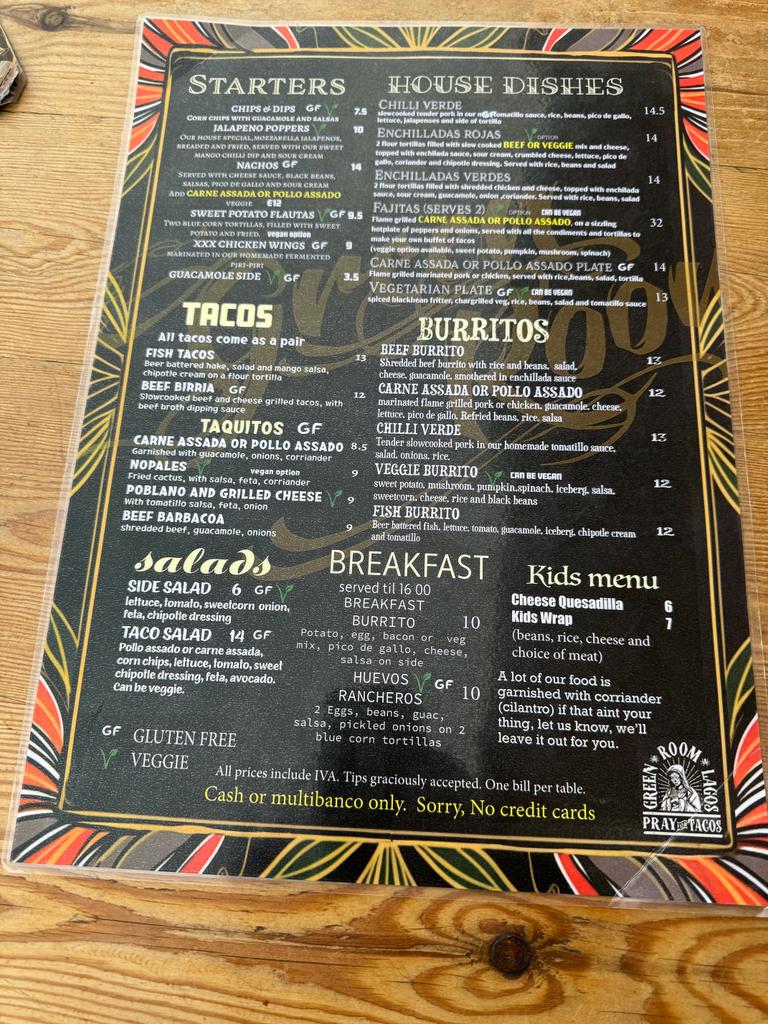 From the unique fried cacti (a steal at 9 euros) to hearty breakfasts (served until 4, 10 euros), flavorful tacos and mouthwatering burritos (both 12 euros), and a satisfying vegan plate featuring a black bean burger with rice and veggies (13 euros), there's something for every palate.