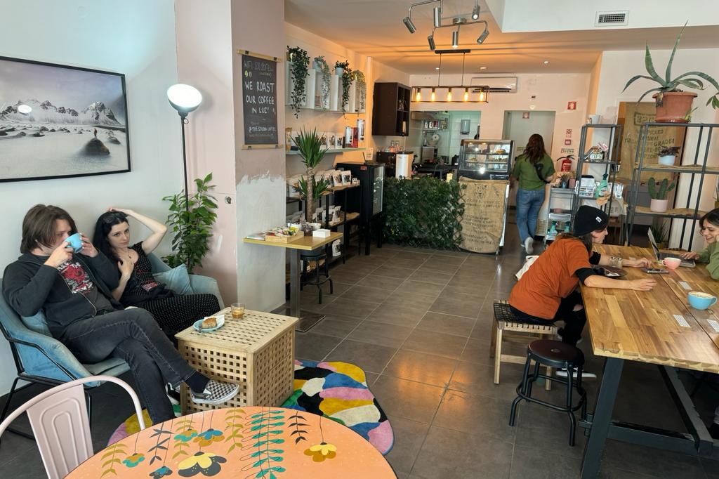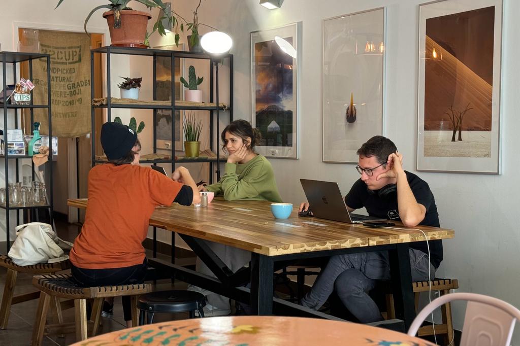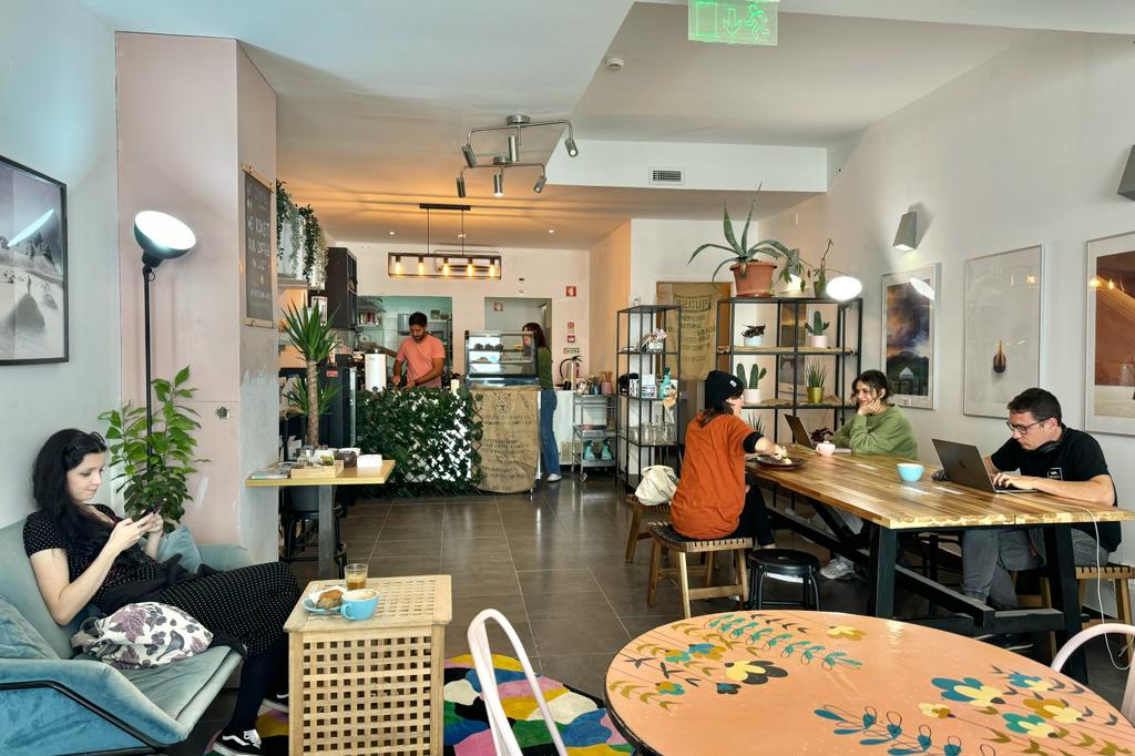 The cafe exudes a cool and welcoming atmosphere, making it a hotspot for both locals and digital nomads. You'll often find freelancers and remote workers gathered around the large communal table, enjoying delicious coffee while getting work done.