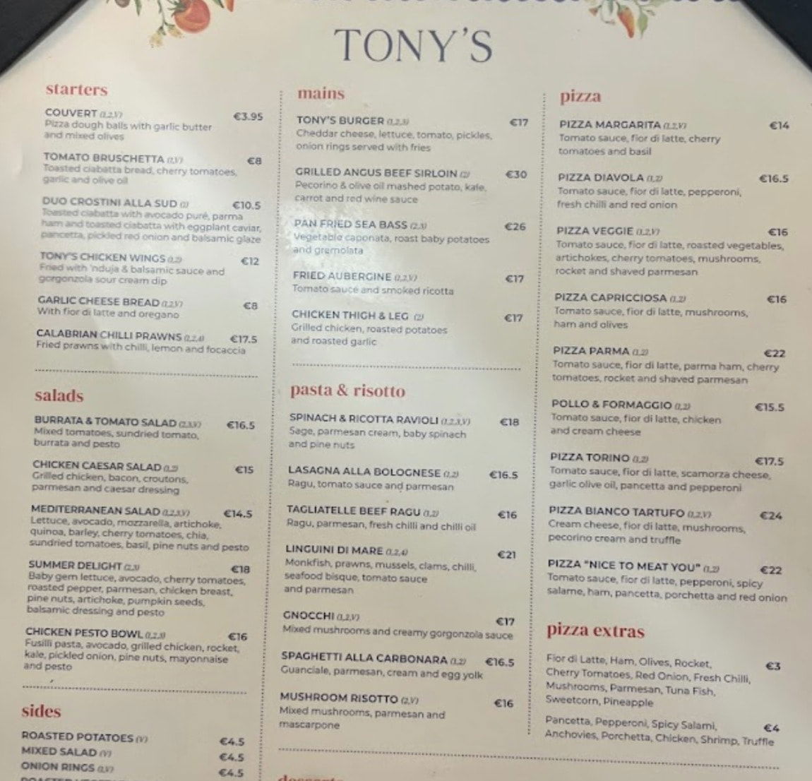Mains from 16 (pizza vegetariana) to 26 euro (sea bass).