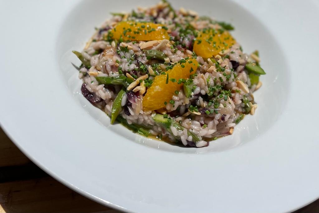 On the menu, in addition to fish and meat, you'll also find three vegan options: red lentil and vegetable curry (16 euro), tagliatelle with tomato sauce and pine nuts (20 euro), and risotto with green asparagus and almonds (16 euro).