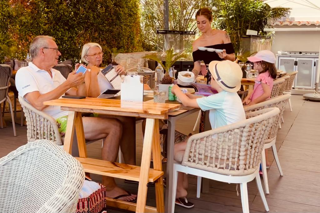 Upon arrival, you'll be warmly greeted by the lovely hostess who will escort you to your table. The restaurant boasts around 25 tables, although it's worth noting that it lacks indoor seating, presumably closing during the winter months. However, during the summer, it's a fantastic spot to enjoy the pleasant ambiance and relaxing music.