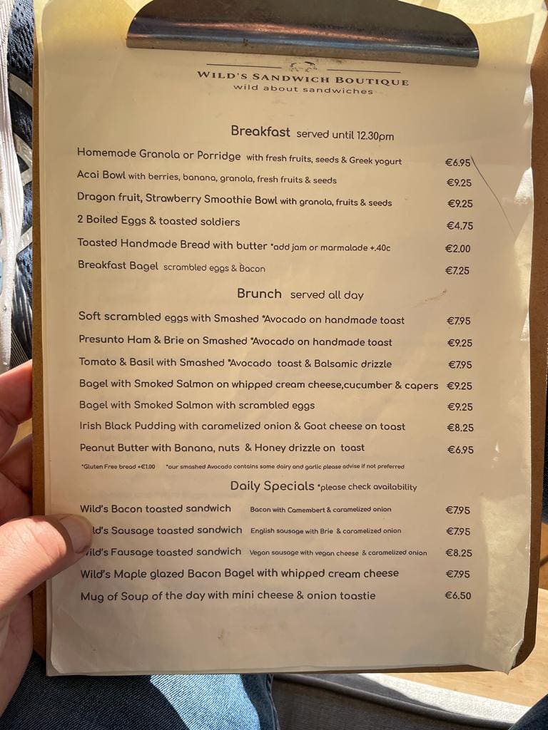 I ordered a bacon Sandwich here. The bacon was dry and crispy between two thick slices of white bread, They charged 8 euro. I complained later on line, sadly they felt they had given good service and value.