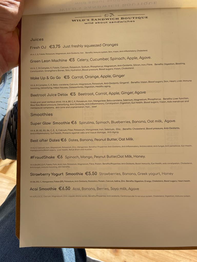 Fresh juices & smoothies, bowls, granola, avocado, wraps, carrot cakes, (vegan) sausages.. and yes.. they have sandwiches.. also glutenfree if you want it.